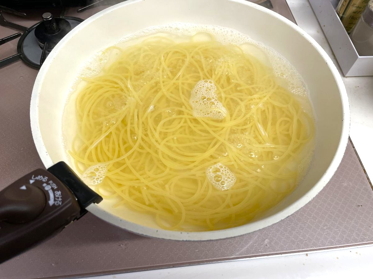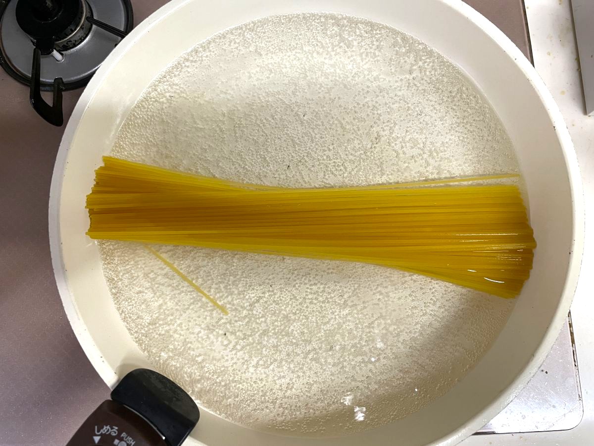 次にパスタを一束投入します。