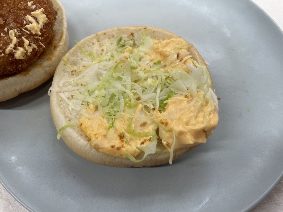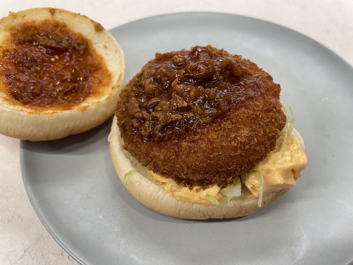 普通のハンバーガーのバンズよりもパサつきが抑えられて、しっとりとした食感に仕上がっています。