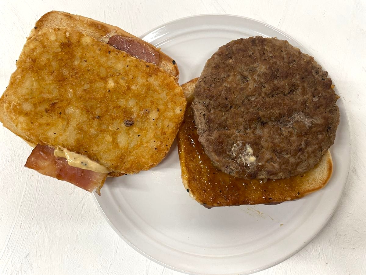 ハッシュドポテト(ポテトパティ)をめくるとビーフパティ。