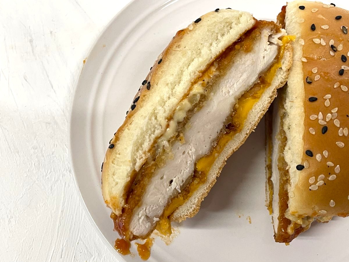 一枚肉ではなく成型されているチキンなので、サクッと噛み切れるのもいいですね。