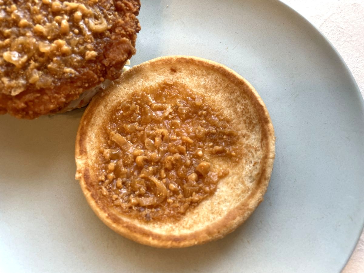 お肉の下にこういったフィリングが入っているのは、マックの商品にしては珍しいですね。