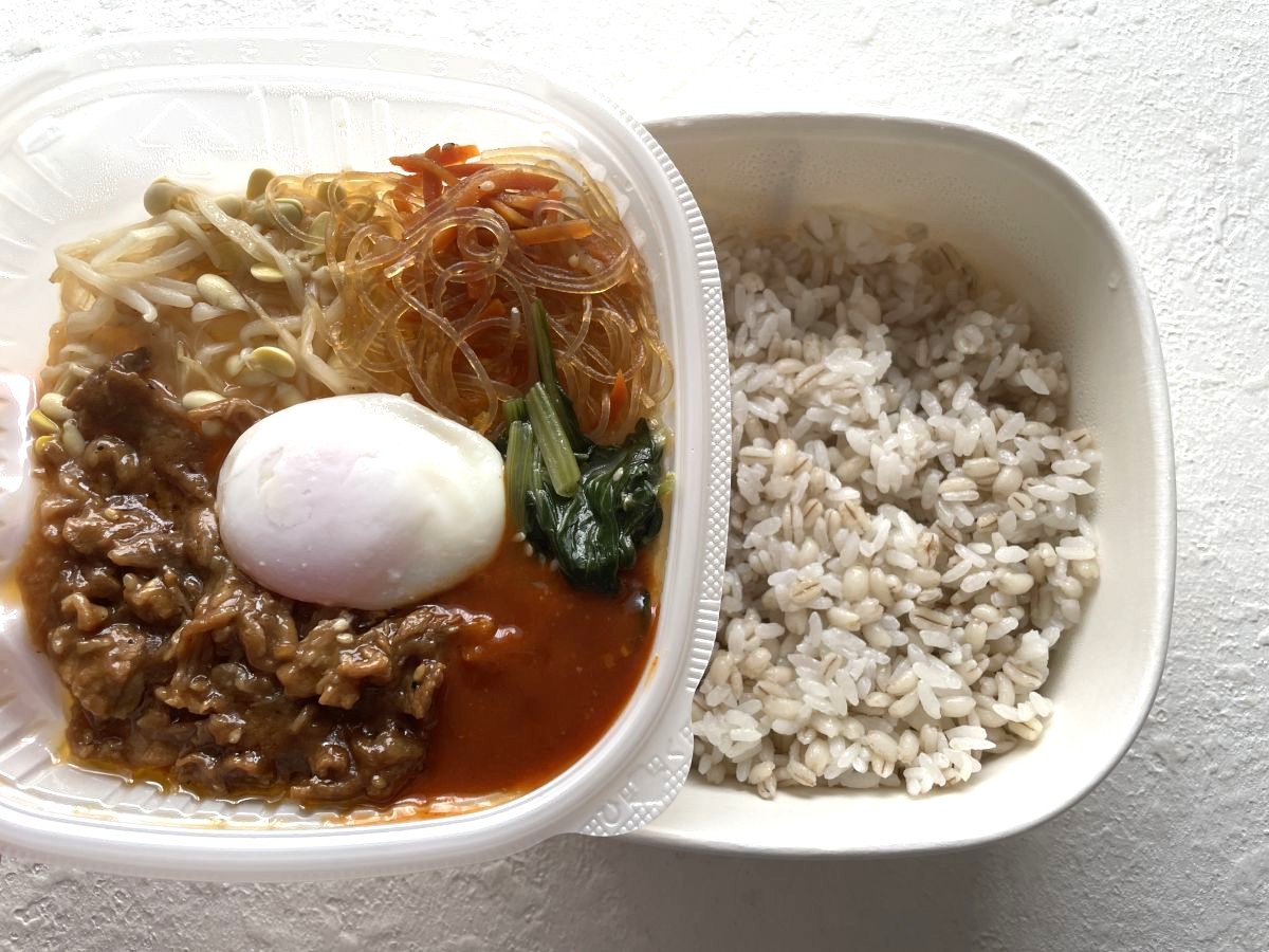 ビビンバにもち麦という組み合わせはあまり見たことがないですが、はたしてどうなるか。